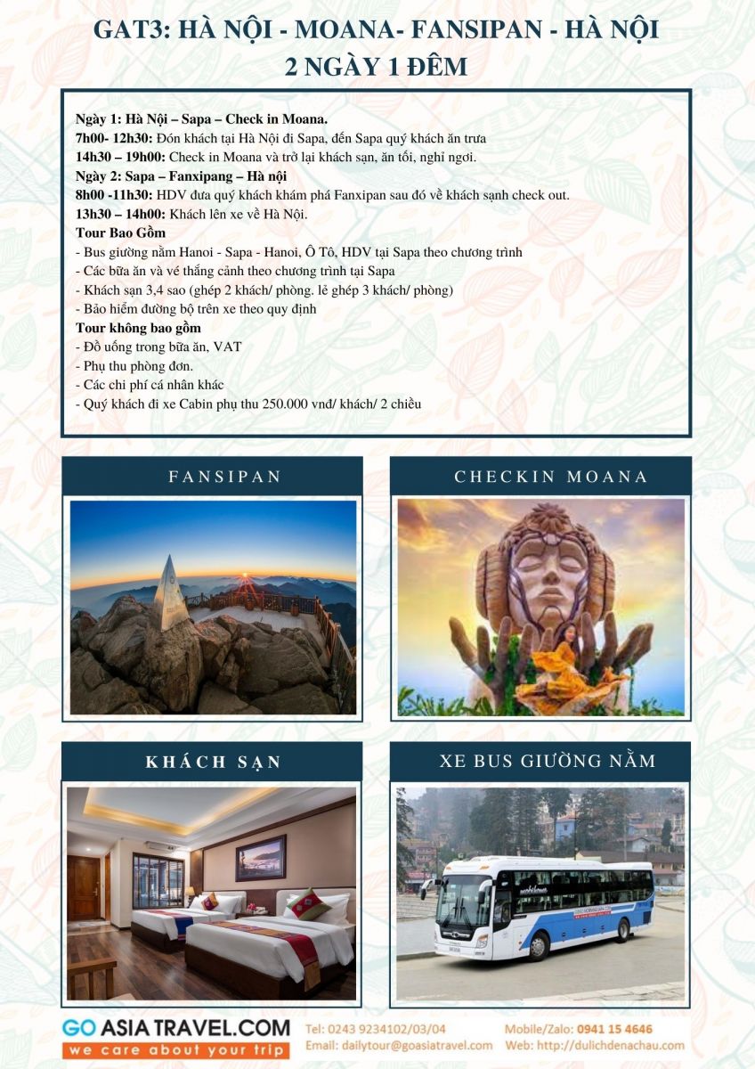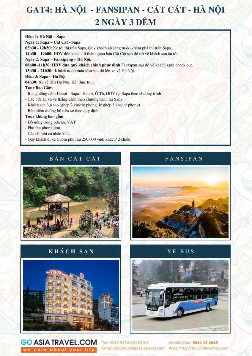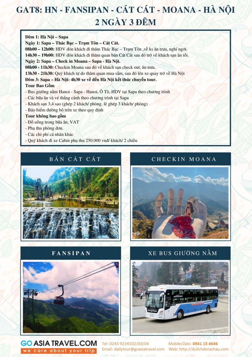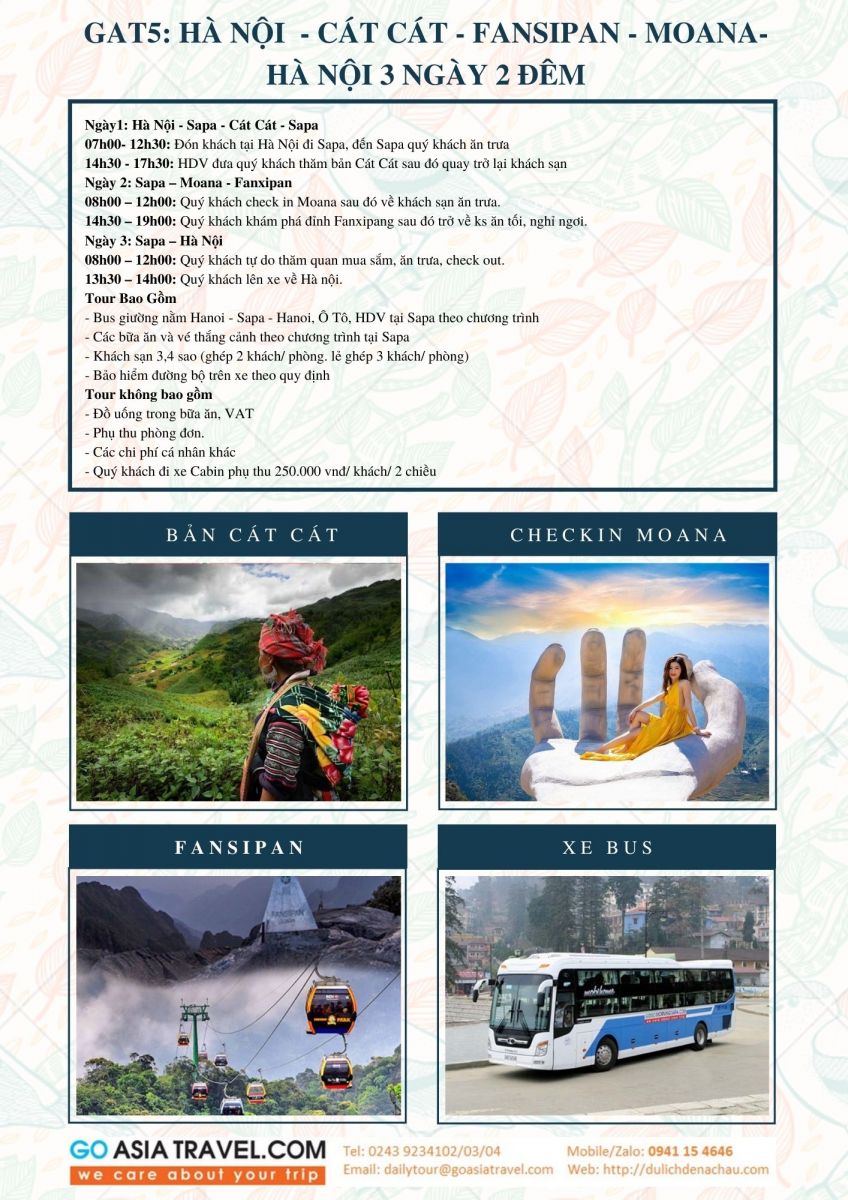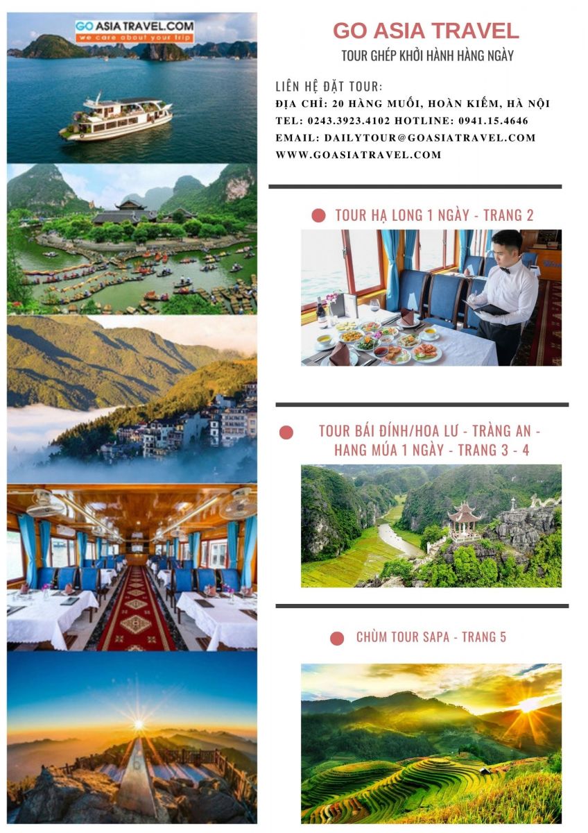 Bộ tài liệu chương trình tóm tắt và ảnh minh họa các tour ghép khởi hành hàng ngày từ Hà Nội đi Hạ Long, Sapa Ninh Bình từ Go Asia Travel hỗ trợ đại lý bán hàng tốt hơn