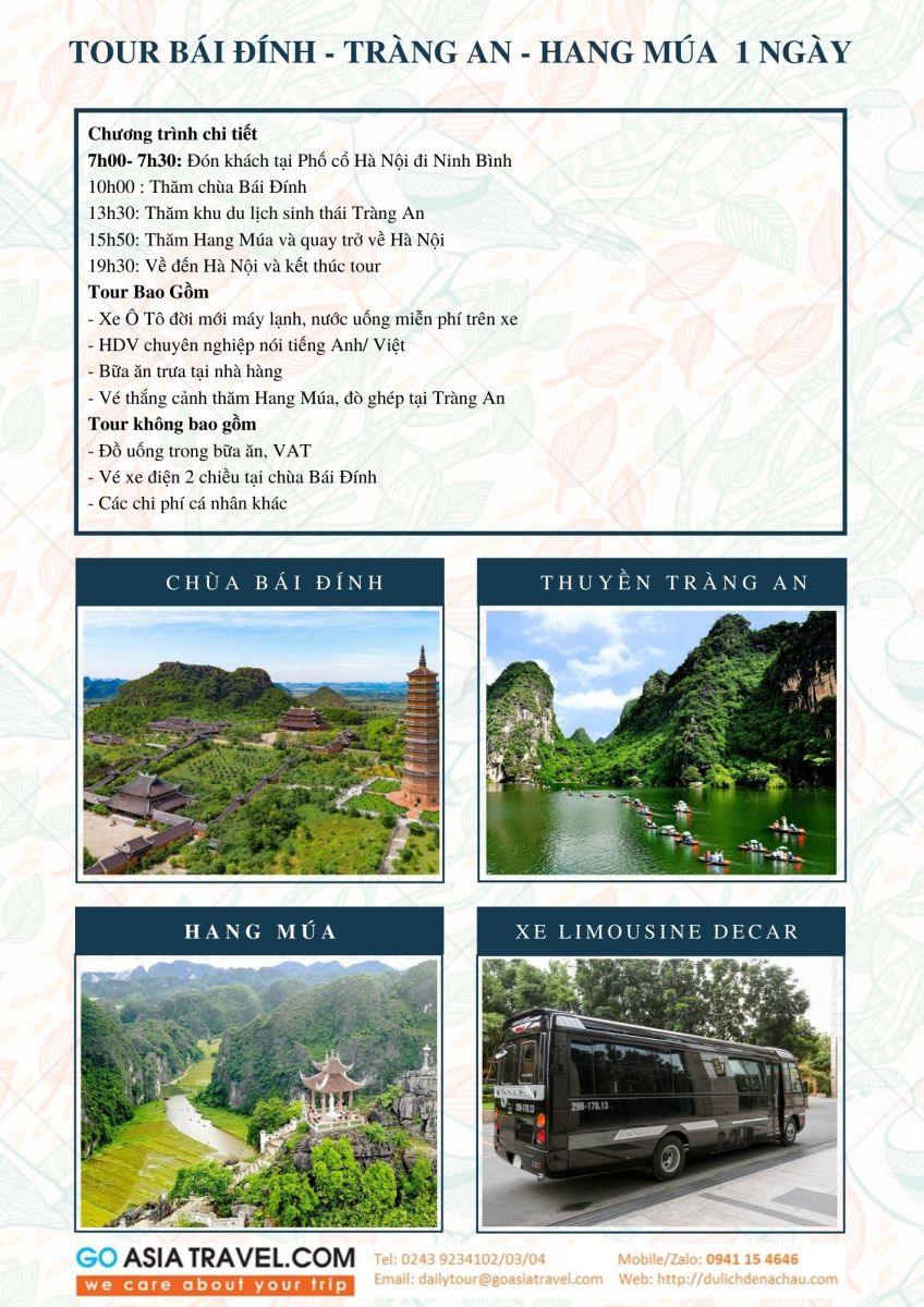 Chương trình du lịch Bái Đính - Tràng An - Hang Múa 1 ngày